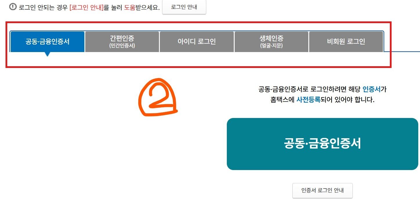 ○ 공동인증서(구 공인인증서) 또는 간편 인증(네이버, 카카오 등)으로 로그인.